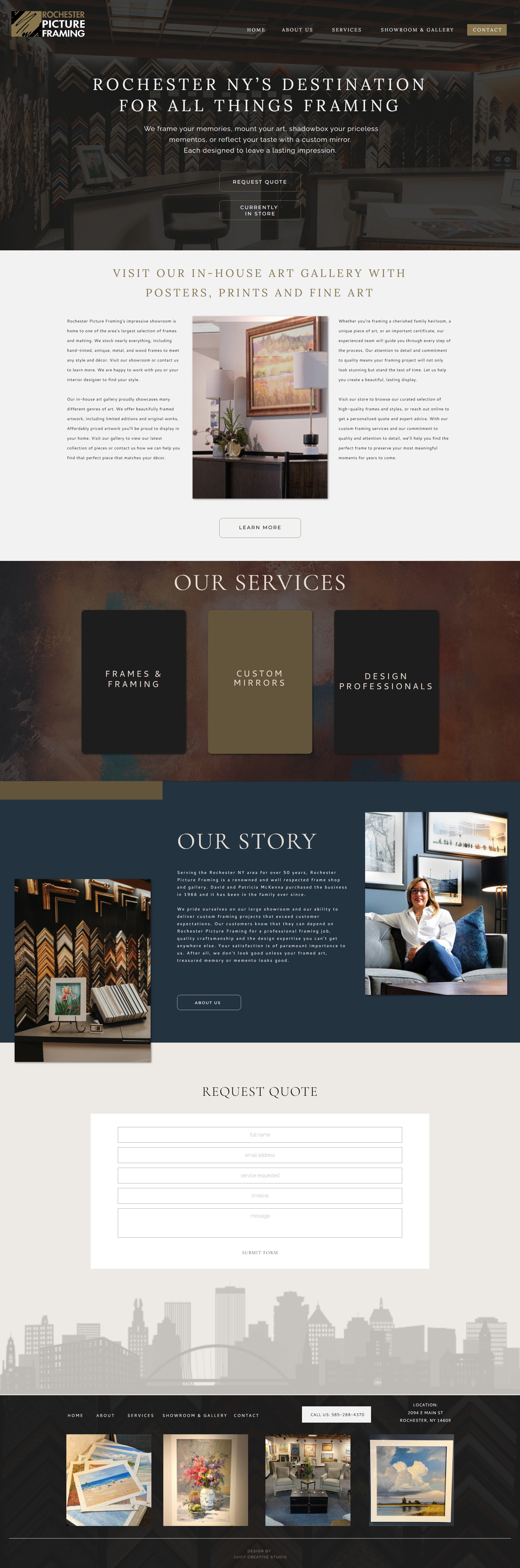 Rochester Picture Framing is a family-owned custom framing shop that has been serving the Rochester community for over 60 years. Known for their craftsmanship, attention to detail, and wide range of framing options, they’ve built a trusted reputation helping clients preserve and showcase what matters most.